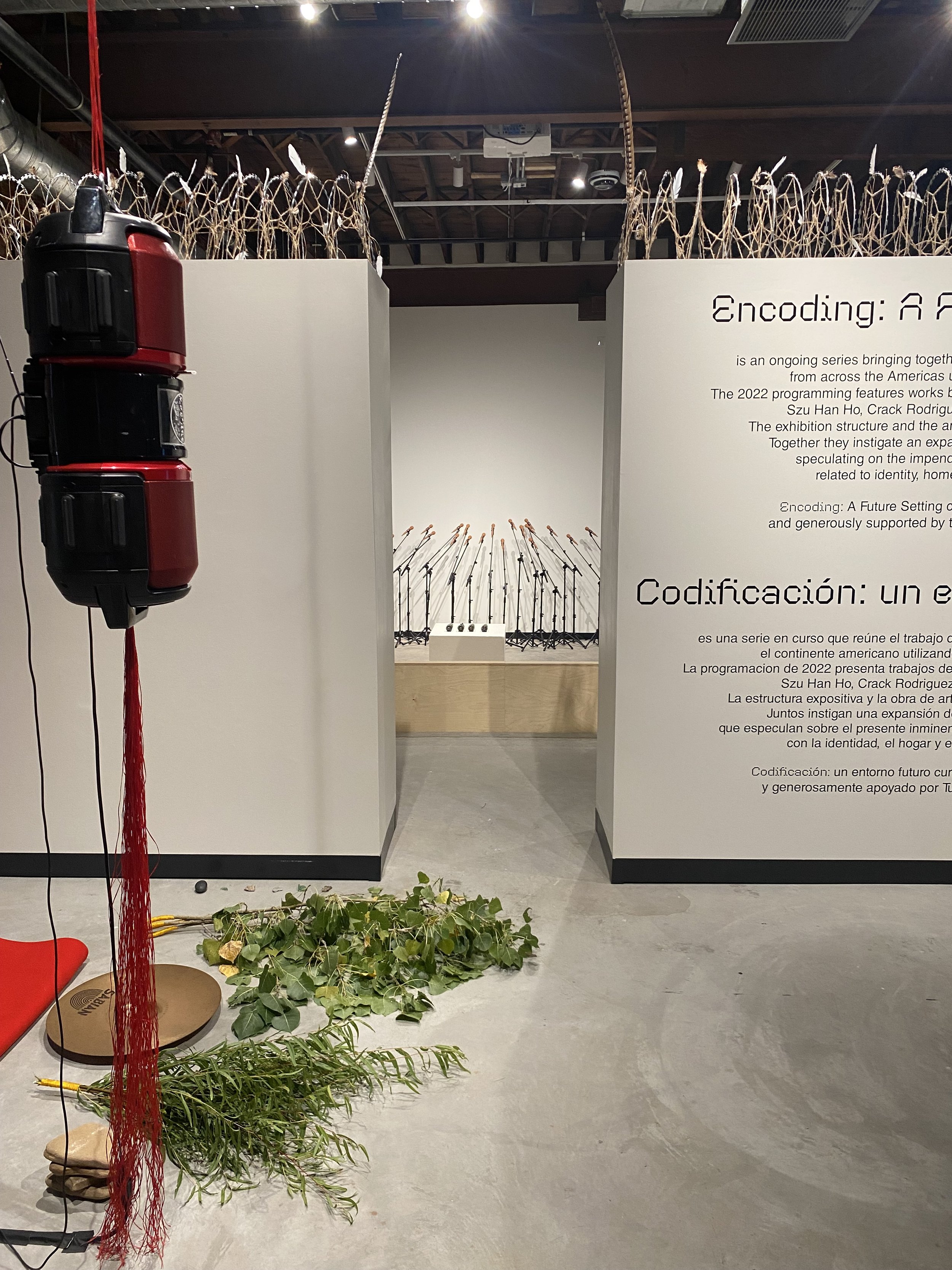 Encoding: A Future Setting is an ongoing series bringing together the work of contemporary artists from across the Americas using visual and sound art. The 2022 programming features works by Vivian Caccuri, Benvenuto Chavajay, Szu Han Ho, Crack Rodriguez, and Warren Realrider. The exhibition structure and the artwork are encrypted languages. Together they instigate an expansion of future perspectives speculating on the impending present, with terms related to identity, home, and environment.